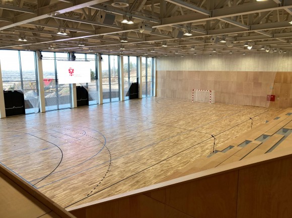 V športovej hale sa nachádza panoramatická kaviareň a wellness ostrov, kde nájdete fínsku a bio saunu, jacuzzi a potápačský bazén.